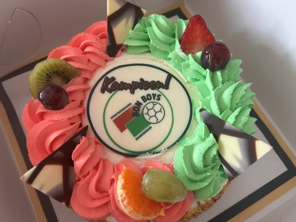 Vanaf maandag 20 april is de Bon Boys kampioenstaart verkrijgbaar bij onze sponsor Dorpsbakkerij Middelhuis. En wij hebben deze al geproefd, heerlijk!