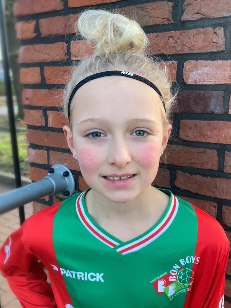 Rosalie is 9 jaar, speelt bij Bon Boys JO10-3 én laat daarnaast haar talent zien in de U10-trainingsgroep van het Twents Regioteam. Voorin het veld voelt ze zich helemaal thuis: het liefst in de spits of op het middenveld, waar ze lekker kan aanvallen. Haar voetbalhart klopt voor FC Twente, met Lars Unnerstall als grote held en Lieke Martens als haar voorbeeld bij de vrouwen. En ja… Vivianne Miedema vindt ze wereldwijd gewoon de allerbeste.